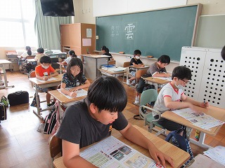 4年1組では、社会の時間、テストを行っていました。