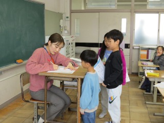 書写ノートの残りのページが少なくなってきていました。終わった子から、担任の先生に書いたページを見せに行っていました。