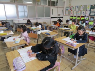 1年2組 書写の時間