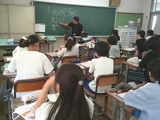 6年1組は算数の時間でした。図を活用しながら、「A・B・どちらにも含まれる」の場合の考え方を学習していました。
