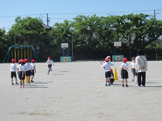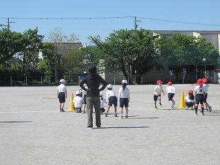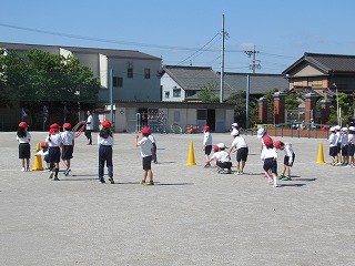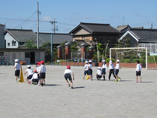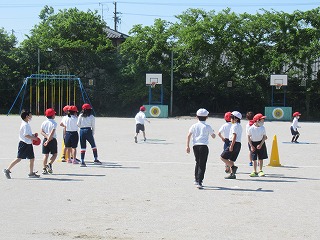 2年生が、運動場で合同体育を行っていました。とても楽しそうでした。