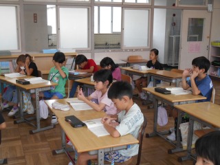 こちらのクラスも同じ教材を使って学習をしていました。「お手紙をなぜわたさなかったのか」みんなで考えているところでした。がまくんとかえるくんの友情を感じる作品です。