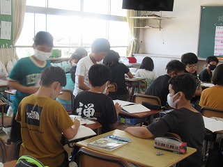 5年1組では、算数の時間、話し合い活動を行っていました。
