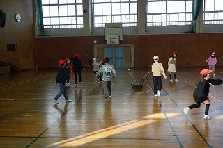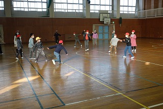 4年1組の学級活動は、体育館でレクリエーションを行いました。みんなでドッジビーを楽しみました。