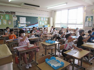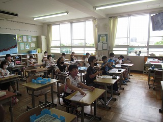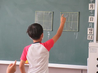 4年2組では、国語の時間、漢字の書き順の確認を子どもが前に出てきて、行っていました。自信をもって、漢字がかけるよい取組ですね。