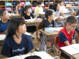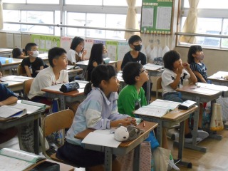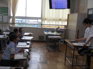 メスシリンダーの目盛りを読み取っていました。1目盛りがいくつか考えながら、数値に置き換えていました。