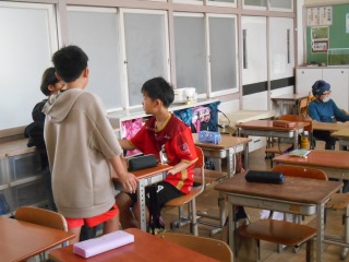 こちらも野外活動の班を決めていました。話し合いながら、決めていました。
