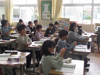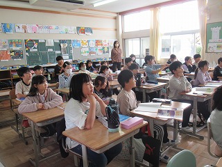 4年1組では、算数の授業の前に、ボールの使い方について、担任の先生からお話を聞いていました。