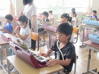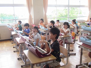 2年1組では、音楽の時間、けんばんハーモニカの演奏を行っていました。