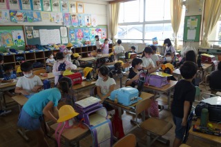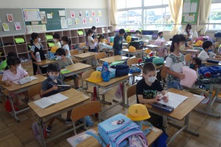 朝の教室では、手洗い、手指消毒を終えた子たちが、一日の用意をしていました。連絡帳を書くときの姿勢が良い子が多くて素晴らしいです。
