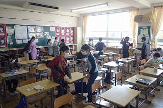朝の教室では、みなさんが提出物を出したり、連絡帳を書いたりしていました。手洗いもしっかりとしていましたね。