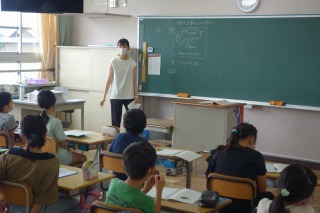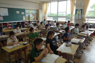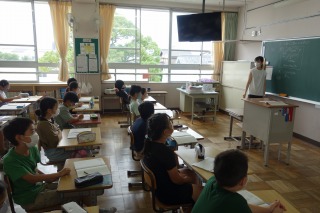 4年1組の算数は、小数の計算のしかたを考える学習でした。かける数の小数をケタごとに分けて計算する方法等をみんなで考えました。