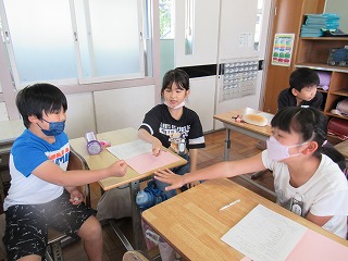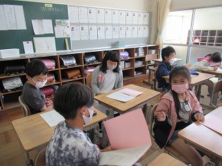 4年2組では、みーわんタイムが行われていました。みんな楽しそうに対話に取り組んでいました。
