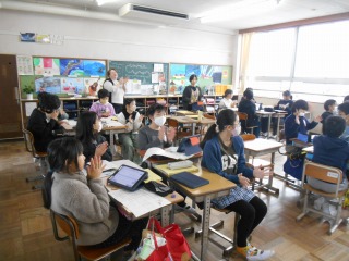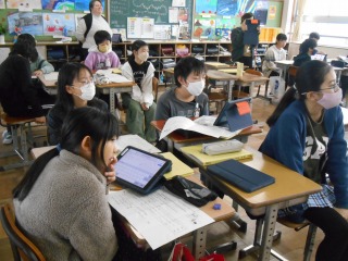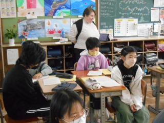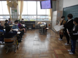 グループで、英語で発表をしていました。聞いている子もしっかりと注目し、最後にがんばったねの拍手をしていました。