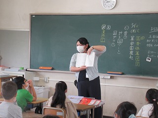 3年1組では、朝の会の時間に、ノートに使い方について担任の先生が説明をしていました。