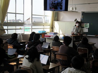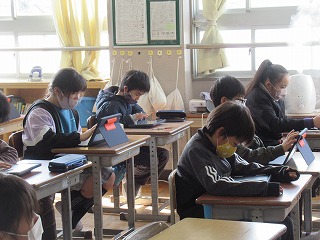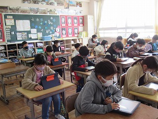 4年2組では、東日本大震災から11年目となる本日、防災教育をタブレットを使って行っていました。いつ地震が起こるか分かりません。自分で判断しながら、行動できるようになってくださいね。
