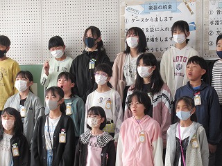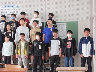 6年1組は音楽の時間でした。さっそく合唱台を使って、合唱の練習を行っていました。力強い歌声が聴こえてきていたので、これからが楽しみです。