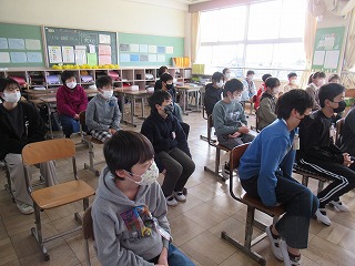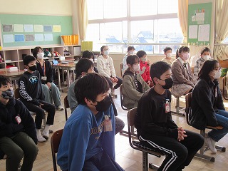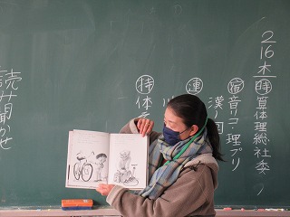 5年1組では、ボラティアさんによる読み聞かせを行っていただきました。子どもたちは絵本をのぞきこんで、聞いていました。