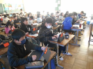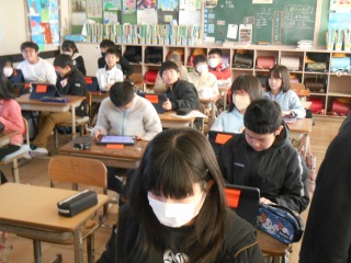 「幸せになるためのキャッチフレーズ」を考え、タブレットに打ち込んで提出していました。