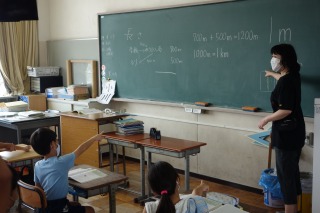 3年1組の算数は、長さの学習でした。キロメートルという長さの単位を覚えました。