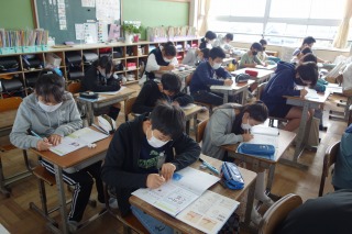 6年1組の書写は、硬筆の学習でした。書写ノートを丁寧に書きました。