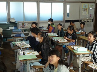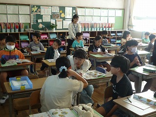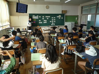 英単語にどんなアルファベットが使われているか、映像を見たり、まわりの子と学び合ったりしました。