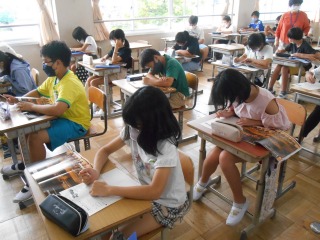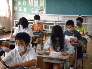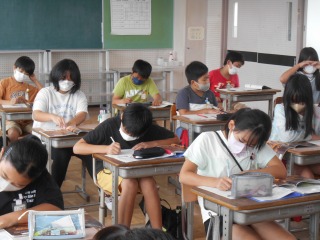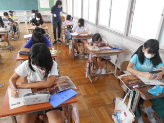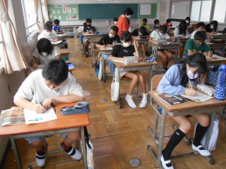 鑑賞の授業でした。ワークシートに感想や気付いたことを書いていました。