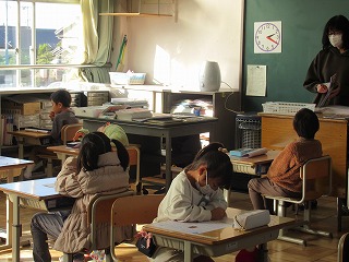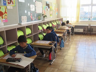 1年1組は国語の時間でした。テストの問題に取り組んでいました。しっかり最後まで読んで答えられたかな?