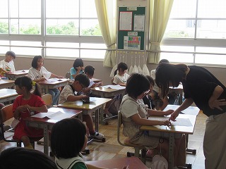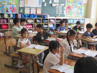 2年2組はテストの答えを解説していました。間違えた問題の確認をしっかり行って、次は間違えないように取り組んでいきましょう。