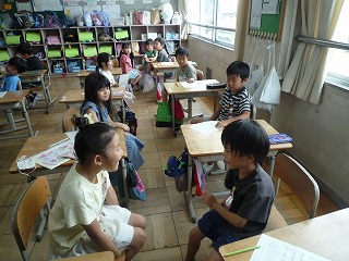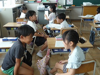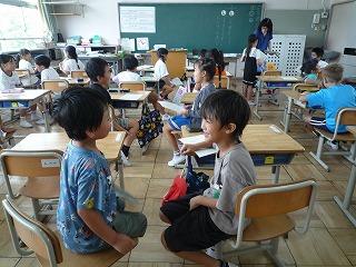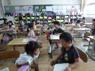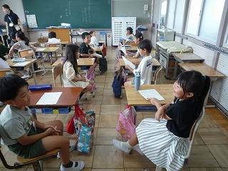行きたいところや好きな遊び、好きな教科などをペアで交流しました。