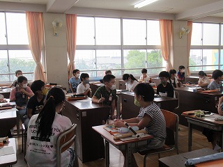 4年2組が、音楽室で音楽の授業を行っていました。リコーダーのテストです。がんばって演奏できました。
