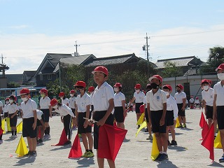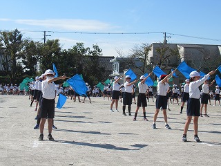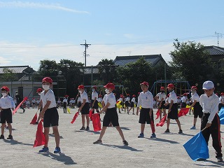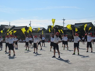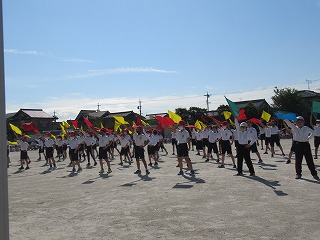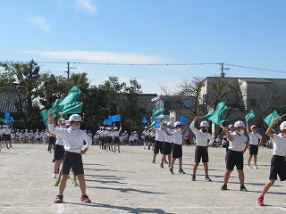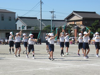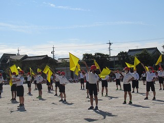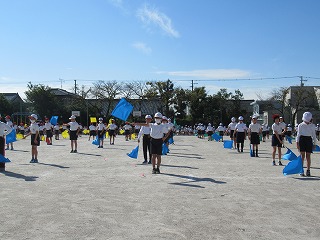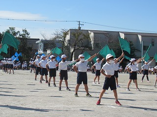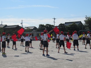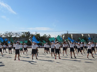 3・4年生の表現です。旗をつかって、キレのある動きを見せてくれました。