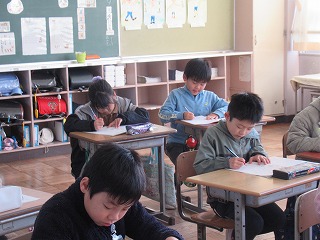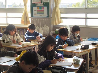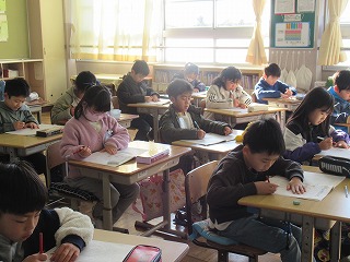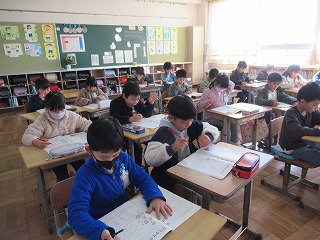 2年1組では、日誌の答え合わせをしていました。先生の解答をしっかりと聞き、まる付けをしていました。