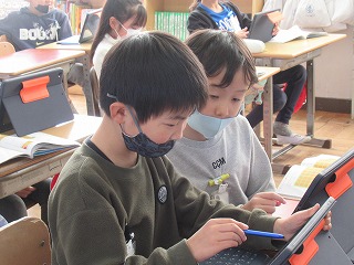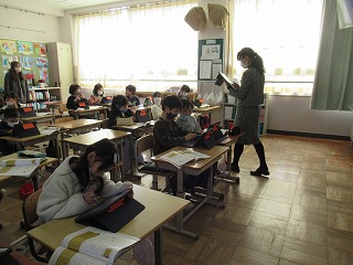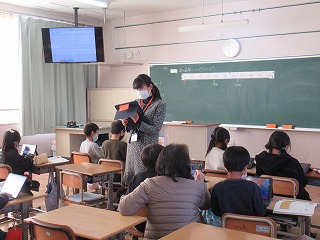2年1組では、算数の時間、タブレットを使い、数の直線について学習していました。