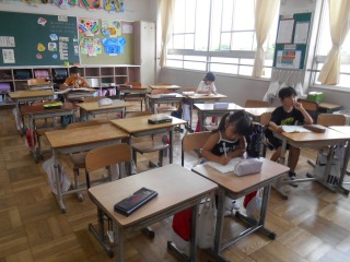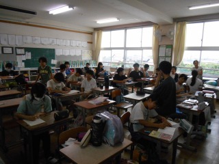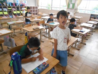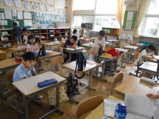登校したはずなのに、数名しか教室にいないクラスがありました。どうやら外にある鉢に、水やりをしに行っているたようです。