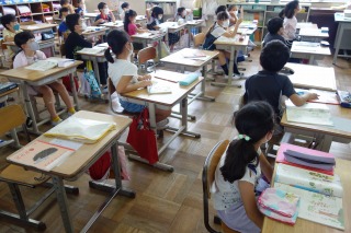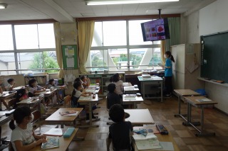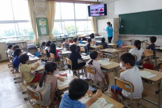 2年1組の国語は、『夏がいっぱい』の学習でした。モニター画面で、グミがどんな植物なのかを確認しました。