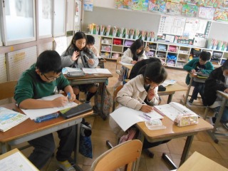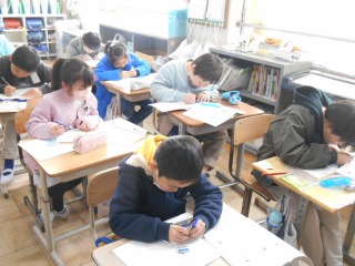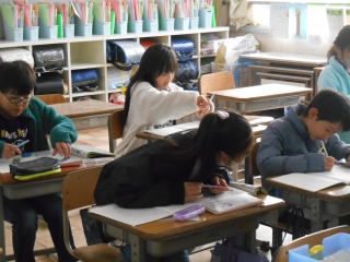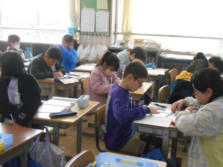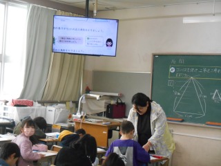 いろんな大きさの三角形を、コンパスを使って描いていました。