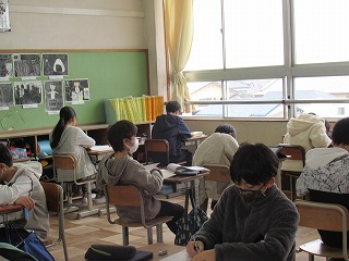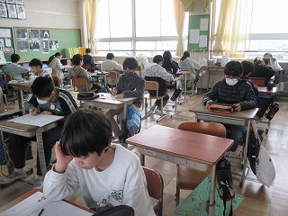 6年2組では、国語のテストが行われていました。