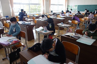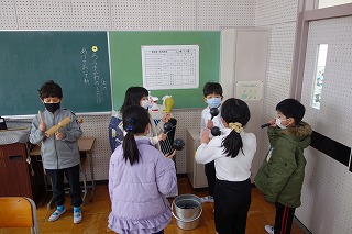 3年2組の音楽は、いろいろな打楽器を演奏して、その特徴をプリントにまとめました。
