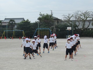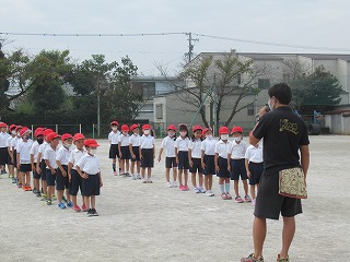 1年生が体育を行っていました。整列し、体操が始まるところでした。ミワリンピックに向けてがんばっています。