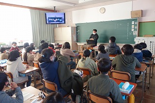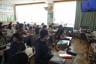 6年1組の学級活動は、各学級から6年生にむけて送られたメッセージ動画を鑑賞しました。