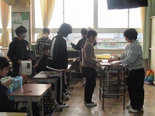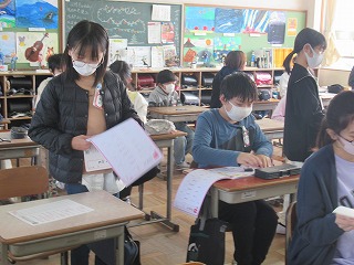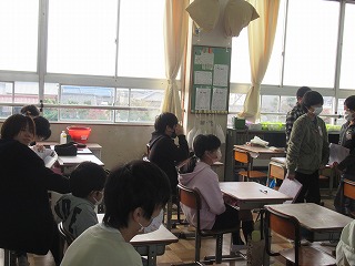 6年1組は国語の時間でした。新出漢字をノートに書いて、担任の先生に確認してもらっていました。難しい漢字も多いと思いますが、しっかり覚えていきましょう。