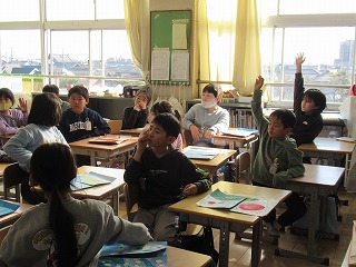 3年1組では、図画工作の作品作りの希望を聞いているところでした。