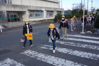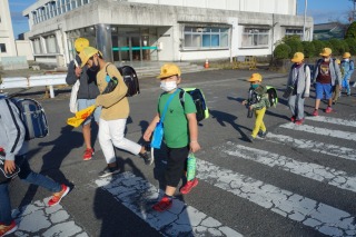 とても良い天気の朝でした。みなさん、通学班で安全に仲良く登校できていましたね。