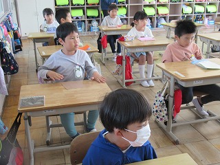 1年1組では、折り紙で飾りを作るところでした。