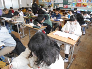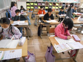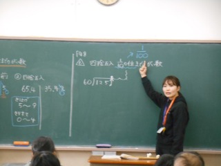 わり算のひっ算を使って、割り切れない計算をどのくらいまで計算するか、練習をしていました。