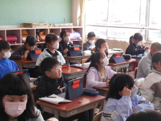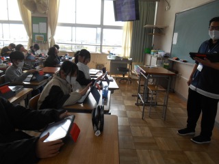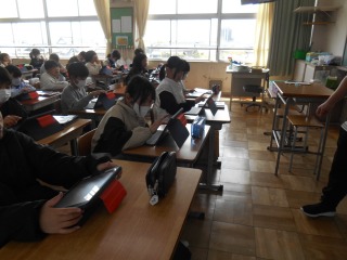 詩を読んで、自分が感じたことをタブレットに入力し、提出していました。