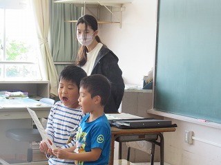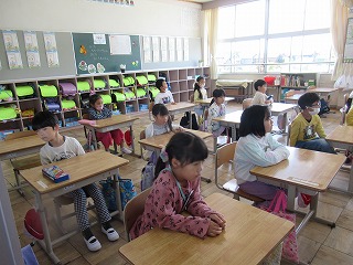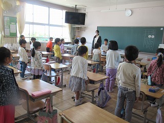 1年2組が、朝の会を行っていました。大きな声で、号令をかけることができました。