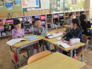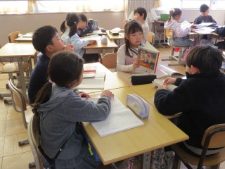 スーホの白い馬を読んで感じたことを、班では発表し合っていました。