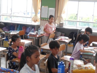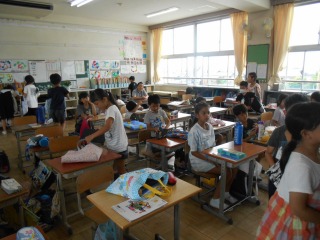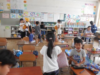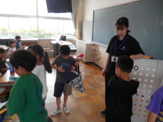 机やロッカーの整頓をしながら、タブレットの準備をしていました。